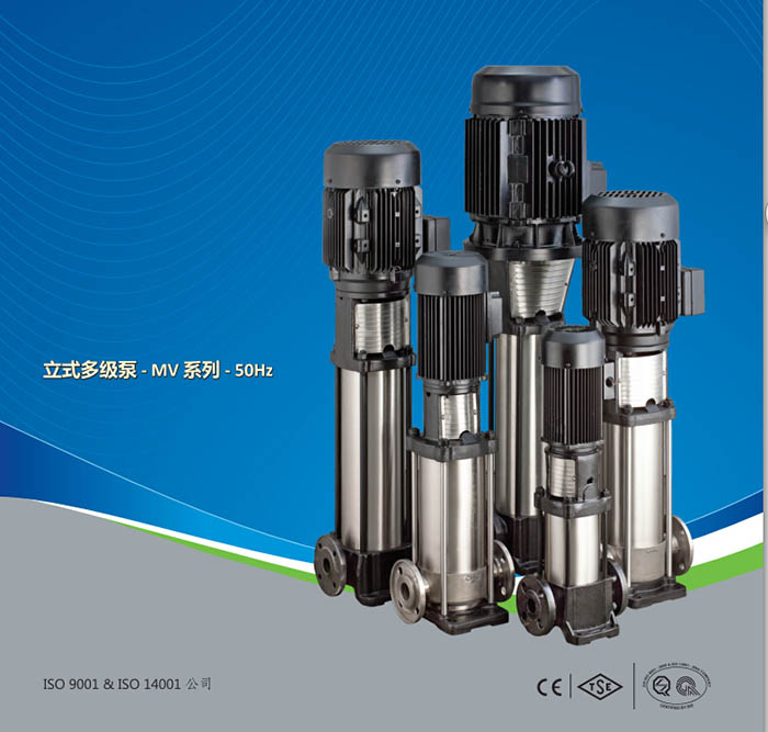 CRI的立式多级离心泵(MV系列)为非自动吸水输送型,带有DIN标准连接端口。这些泵的所有组件,如叶轮,导叶和轴均用耐腐蚀的AISI不锈钢制成,其设计旨在提供最好的水力效率。‘O’环和垫圈防止在高压时中间套管的泄漏。